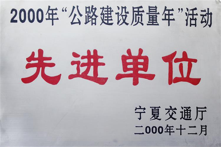 二000年寧夏交通廳授予“公路建設質量年活動先進單位”