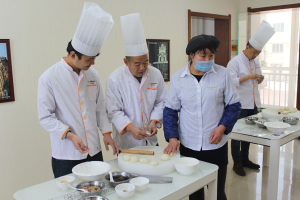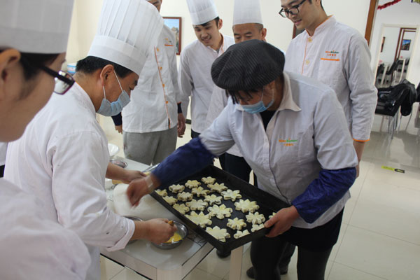 此次活動(dòng),主要教大家做一些精美面點(diǎn),包括梅花豆沙餅、奶香小花卷、揚(yáng)州牛肉小籠包三種,在大廚講解了這些面點(diǎn)的基本做法之后,各學(xué)員紛呈登場(chǎng)、各顯其能,在大廚的協(xié)助下成功做出了自己滿意的作品。活動(dòng)結(jié)束后,大家現(xiàn)場(chǎng)分享自己的勞動(dòng)成果,互品互嘗,歡聲笑語(yǔ)不斷。
