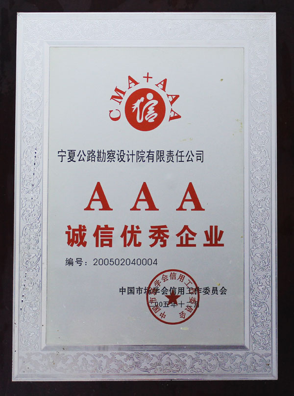 2005年12月AAA誠信優(yōu)秀企業(yè)