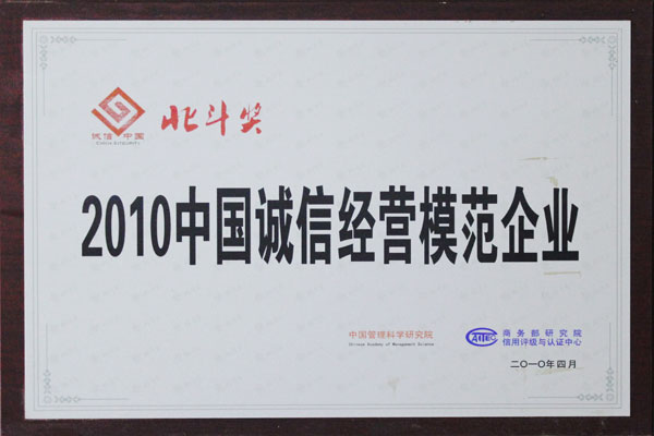 2010年4月中國誠信經(jīng)營模范企業(yè)