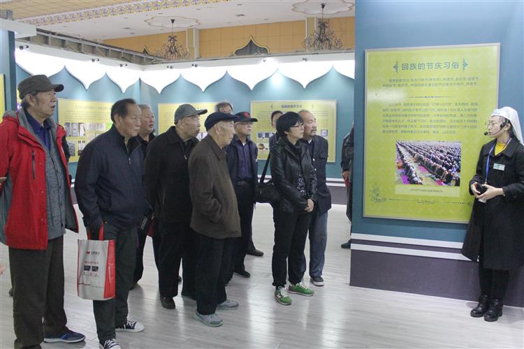 中華回鄉文化園被譽為“中國的泰姬陵”。因為它是一個具有濃郁伊斯蘭風格的建筑群。進入中華回鄉文化園,首先映入眼簾的是高大偉岸的文化園主體大門,白色的伊斯蘭基調和浮雕彩繪精巧地裝飾著飽滿的穹頂,在藍天的映襯下,格外壯觀。老同志們一行參觀了中國回族博物館、回族禮儀大殿、民俗村等景點,觀看了由阿伊莎藝術團表演的回族特色風情節目,既感受到回族人民深厚的歷史文化積淀,又充分領略到回族人民在建筑風格、工藝美術、民俗風情等方面的獨特之處。