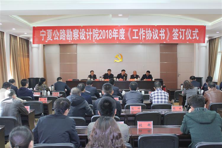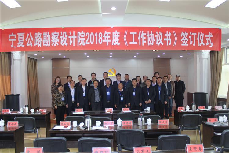 為持續推進寧夏公路勘察設計院快速穩健發展,立足新起點、創造新輝煌,2018年度工作協議和黨委意識形態、社會綜治等責任書簽訂儀式于3月7日在公司二樓會議室順利舉行。參加本次儀式主要有院領導、各部門負責人,以及副總工程師等相關人員。