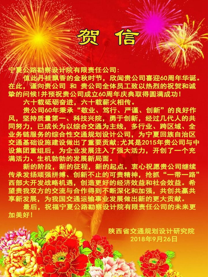 難忘崢嶸歲月,憧憬美好未來。我們相信,在寧夏回族自治區黨委、人民政府的決策部署和交通運輸廳黨委的堅強領導下,在中設設計集團和社會各界的關心和支持下,通過全體干部職工的共同努力,寧夏院一定能夠繼往開來,再創輝煌!
