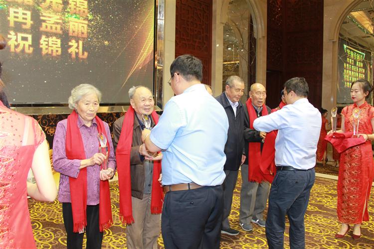 劉鵬總裁和林飛總經理為年齡75歲及以上的老員工頒發“建院卓越貢獻獎”