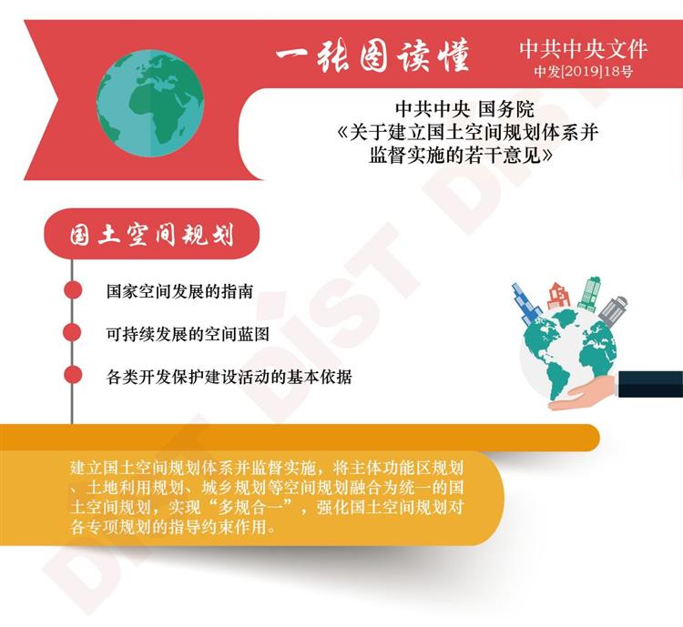 2019年5月23日,中共中央、國務院《關于建立國土空間規(guī)劃體系并監(jiān)督實施的若干意見》(以下簡稱《意見》)正式對外公布。《意見》指出,國土空間規(guī)劃是國家空間發(fā)展的指南、可持續(xù)發(fā)展的空間藍圖,是各類開發(fā)保護建設活動的基本依據(jù)。建立國土空間規(guī)劃體系并監(jiān)督實施,將主體功能區(qū)規(guī)劃、土地利用規(guī)劃、城鄉(xiāng)規(guī)劃等空間規(guī)劃融合為統(tǒng)一的國土空間規(guī)劃,實現(xiàn)“多規(guī)合一”,強化國土空間規(guī)劃對各專項規(guī)劃的指導約束作用,是黨中央、國務院作出的重大部署。