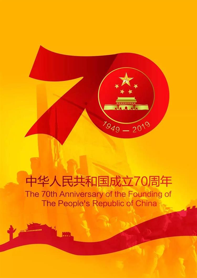 活動標識以數字“70”和代表國家形象的國徽五星及天安門作為設計核心元素,緊扣中華人民共和國成立70周年慶典活動主題。活動標識中,“70”設計成翻開歷史新的一頁的視覺效果,突出黨和國家各項事業的嶄新形象,寓意在以習近平同志為核心的黨中央堅強領導下,中國特色社會主義進入新時代,中華民族奮力譜寫新篇章?!?”的造型又像節日的彩帶,其飄動的效果與醒目的金色立體國徽五星及天安門所在的圓形構成了一動一靜的互動關系,既體現了歷史的厚重感,又蘊含了重大節日的歡慶氣氛。
