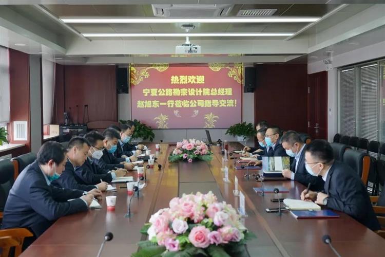 2020年3月18日上午,寧夏院總經理趙旭東一行7人赴寧夏交通建設股份有限公司交流學習,寧夏交建總經理周興武、總工程師武良繕、副總經理楊群、門光譽、竇占雙等領導參加了座談。