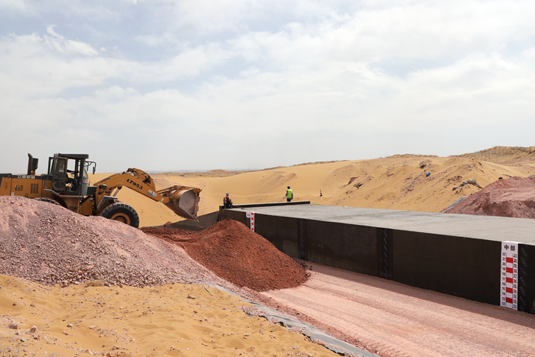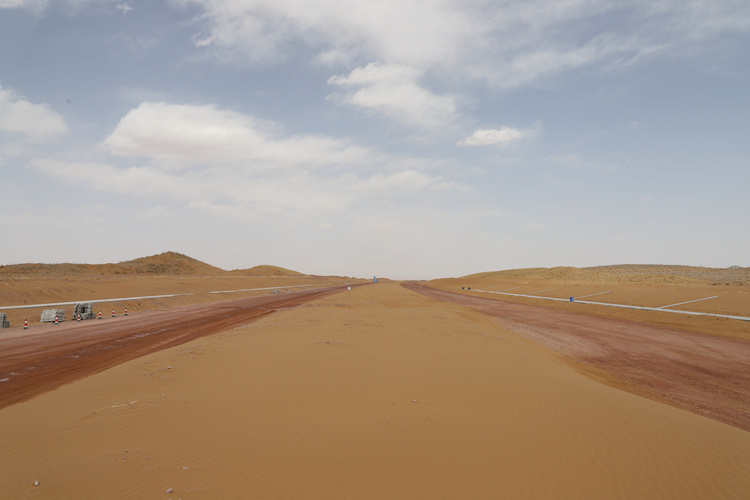 騰格里沙漠是中國四大沙漠之一,自然環境極其惡劣,降雨量小,蒸發量大,氣候溫差大,沙丘鏈分布錯綜復雜,風沙頻繁,風沙危害嚴重。惡劣的自然環境和復雜的工程地質條件該項目的建設帶來了極大的挑戰。