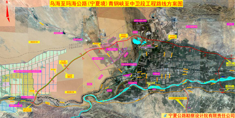 據了解,烏海至瑪沁公路青銅峽至中衛段工程采用雙向四車道高速公路標準建設,設計速度100公里/小時,路基寬度26.0m。目前,石嘴山至銀川段、銀川至青銅峽段已陸續建成通車,青銅峽至中衛段正在建設中,擬于2020年年底建成通車。建成后,將基本實現烏瑪高速公路寧夏境路段的全線貫通。該段路線起自青銅峽市同興移民村西,經青銅峽、中衛,穿越騰格里沙漠后,于中衛市沙坡頭區順接定武高速,主線全長122.9公里,其中需穿越騰格里沙漠腹地18公里,是國內首條穿越沙漠腹地的高等級公路。