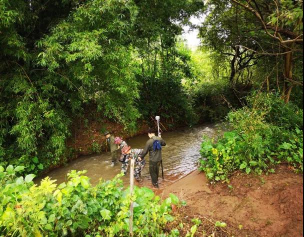 初到外業現場,首先讓人吃不消的是氣候和環境,面對令人窒息的熱浪、原始森林和沼澤地以及深不見底的草叢中隱藏的毒蛇毒蟲,周亮和橋涵組長趙騰輝挺身而出,作為排頭兵在前面開路,為后面的同志開辟出一條可以勉強通行的小路。他們平均每天行程兩萬多步,時常流汗到虛脫。在結束了一天的外業勘察工作,晚上拖著疲憊的身軀回到駐地,經過短暫的休息后,周亮還要帶領項目組成員進入內業整理工作。他們不禁讓人感嘆:古有桂系能征善戰,今有西北漢子征服天險。