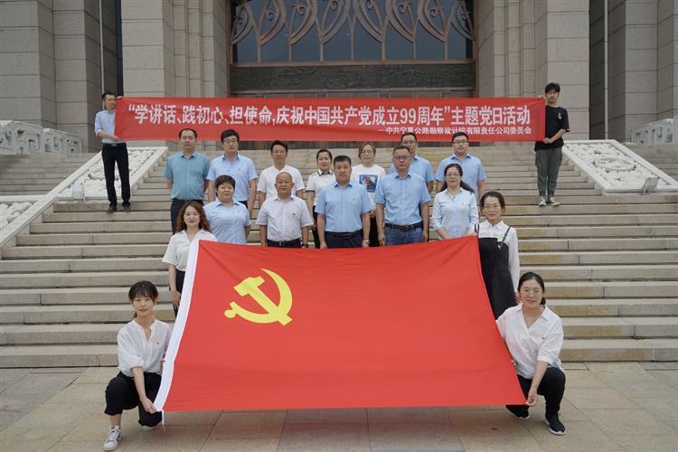 為慶祝中國共產黨成立99周年,重溫黨的光輝歷史,進一步增強基層黨組織的凝聚力和戰斗力。7月1日,寧夏院黨員干部在院黨委書記、總經理趙旭東帶領下,來到寧夏博物館進行參觀學習,開展“學講話、踐初心、擔使命,慶祝中國共產黨成立99周年”主題黨日活動。