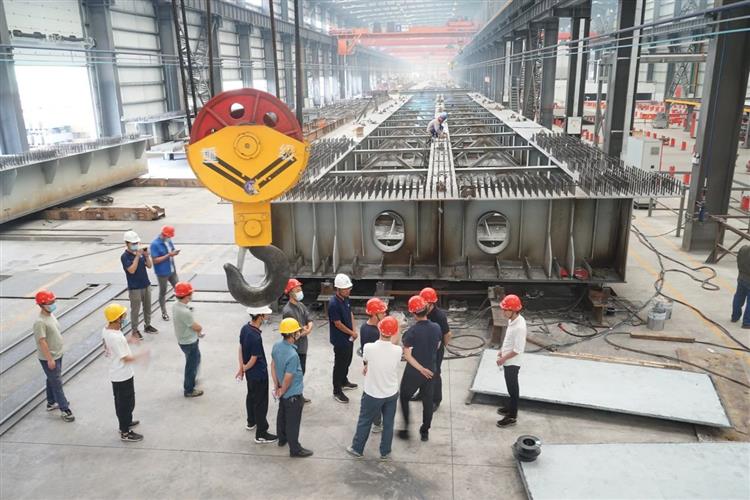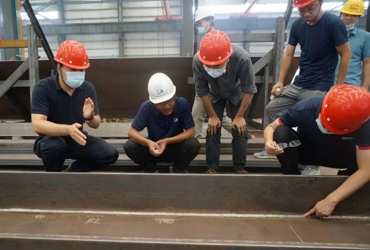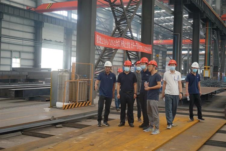 在長江精工寧夏裝配式建筑產業基地,負責人介紹了烏瑪公路青銅峽至中衛段鋼混組合梁加工廠建設、生產情況,并陪同參觀了裝配預應力混凝土體系構件工廠、鋼結構工廠。