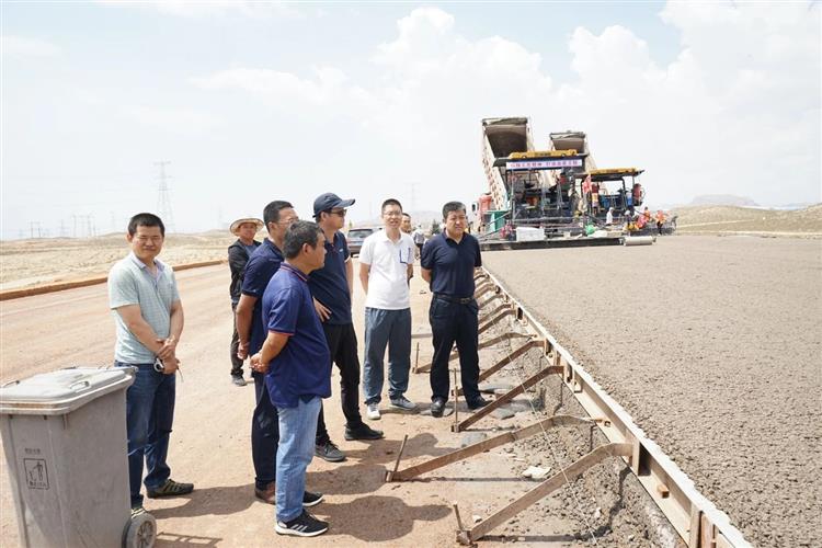 隨后,一行人驅車前往烏瑪高速公路工地現場,先后參觀了烏瑪項目第二中心實驗室、鎮羅黃河特大橋、A2、A7、A10標段。期間,烏瑪高速公路各標段負責人介紹了各標段的基本情況和重點工程,特別對沙漠地區路基建造技術、黃河大橋建造關鍵技術、施工標準化、新材料新技術應用等多方面進行了詳細講解,過程中我院設計人員就施工中的許多實際問題與施工人員進行了細致的交流。最后,我院科研項目負責人對《基于綠色生態理念的沙漠腹地高速公路建設關鍵技術研究》項目進展情況進行了現場匯報,大家就相關問題進行了討論交流。