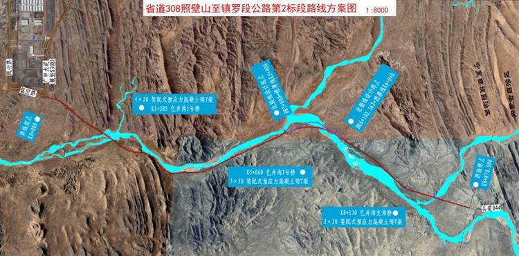本項目位于中衛市鎮羅鎮境內,起點位于廣申大道(規劃S308)與鎮照路平交口,終點止于寧蒙界,路線全長8.87km。采用二級公路標準建設,設計速度為60km/h,路基寬度10米。