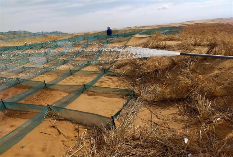 2020年8月16日-2020年8月30日《基于綠色生態理念的沙漠腹地高速公路建設關鍵技術研究》的科研試驗項目——生物礦化防沙固沙的關鍵技術現場試驗開始實施。生物礦化防沙固沙的關鍵技術是利用生物礦化技術(MICP),從源頭防止風沙危害,并且有效改善沙漠層的持水能力,該方法采用綠色環保的技術解決防沙固沙的世界難題,該試驗將為我國沙漠治理提供新的理論依據和應用示例,對我國沙漠治理具有重要的意義。