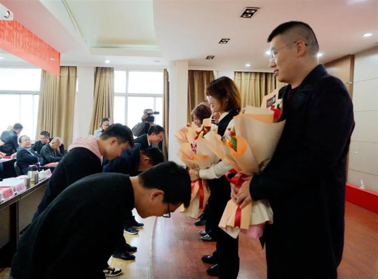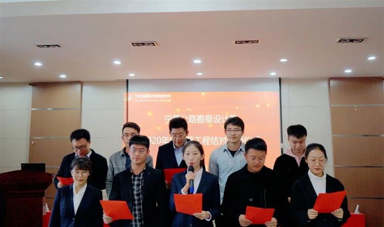 會議首先由院副總經理、總工程師李偉群宣讀2020年度青藍雙方名單,隨后院領導為導師代表頒發聘書,徒弟們向師傅們獻花、鞠躬,并進行莊嚴宣誓。要以誠心、細心、精心、耐心的學習態度;勤學、勤問、勤看、勤聽的學習方法;達到成長、成熟、成才、成事的學習目的。