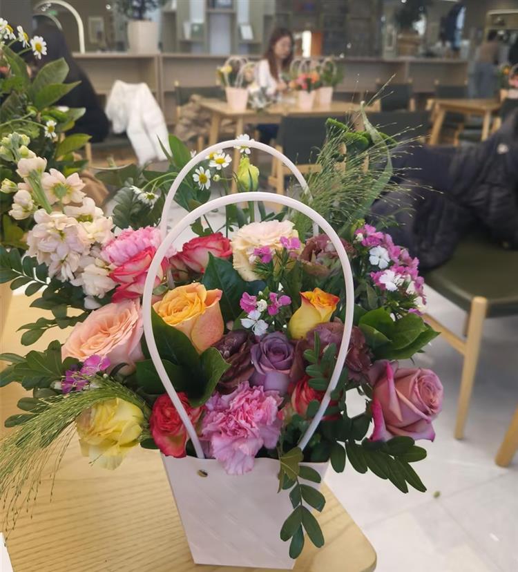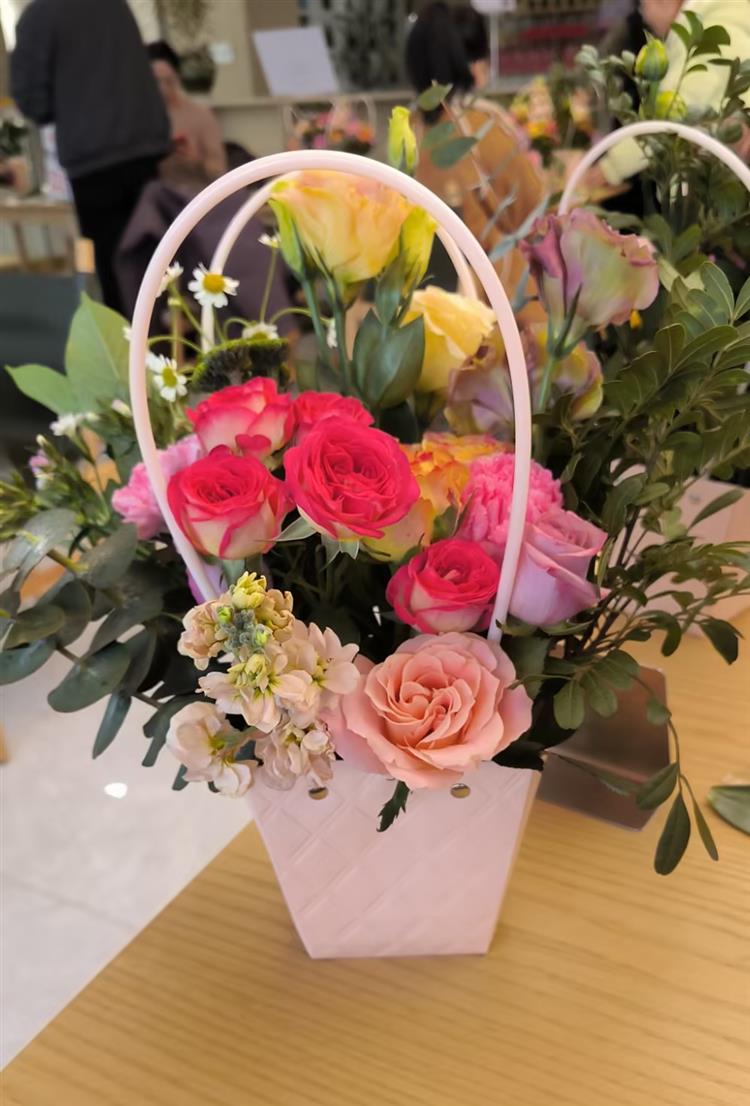 在花藝師的指導下,大家將一朵朵鮮花搭配成獨具匠心的花藝作品,感受自然與藝術的完美融合。