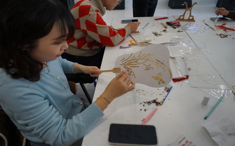 在專業老師指導下,參與者體驗了非物質文化遺產—傳統金箔工藝,用細膩的手法將金箔點綴在器物上,感受傳統手工藝的魅力。